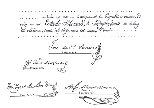 Abb.: Unterschriften unter der UnabhängigkeitserklärungUnabhängigkeitserklärung von Alto Perú