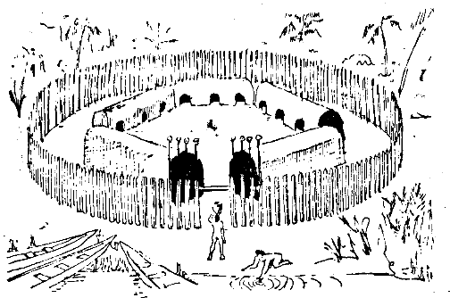 Abb.: Francisco A. Vaenhagen: Guaraní-Gehöft, 1847