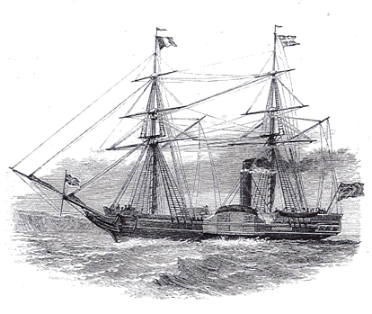 Abb.: Postdampfer Peru der P.S.N.C., 1840[Bildquelle: Vierus, Dieter: Welt der Postschiffe. -- Hamburg : DSV, ©1995. -- (Schiffe der Welt). -- ISBN 3-88412-196-0. -- S. 124]