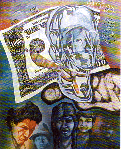 Cárdenas: Ursprünglich war Víctor Hugo der Präsidentschaftskandidat unserer Bewegung, die die linken Parteien, die kataristischen Bewegungen und die Intellektuellen, die nicht ihre Prinzipien aufgegeben hatten, zusammenfasste. Doch von einem Moment zum anderen entschied er sich, mit der Nationalistisch-Revolutionären Bewegung (MNR) als Vizepräsidentschaftskandidat in den Wahlkampf zu ziehen. Er optierte dafür, in einer Regierung der UnternehmerInnen zu sein, denn es ist die reine Privatwirtschaft, die jetzt an der Regierung ist. Sie hat die schwere Aufgabe, das neoliberale Modell zu festigen. Wirtschaftliche Maßnahmen wie die Privatisierung des Bodens, wie das Gesetz zur Volksbeteiligung bedeuten im Grund die Auslöschung des Indígena- und Campesino-Elements, der ursprünglichen Autoritäten.