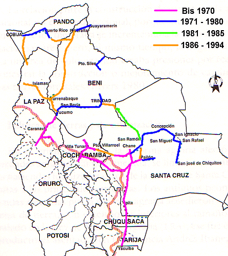 - El cumplimiento de los programas de mejoramiento de caminos y puentes dentro del Parque Nacional Isiboro-Sécure y la construcción del camino carretero Cochabamba-Beni.