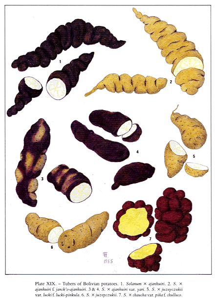 Ochoa, Carlos M.: The potatoes of South America : Bolivia. -- New York [u.a.] : Cambridge Univ. Press, ©1990. -- 512 S. : Ill. -- ISBN 0521380243. -- {Wenn Sie HIER klicken, können Sie dieses Buch bei amazon.de bestellen}. -- [Standardwerk. Erst 2001 erschien eine -- viel zu teure -- Ausgabe in Spanisch.]