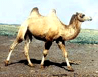 Unterart Camelus ferus bactrianus -- Hauskamel: Rückenhöcker größer und schwerer, oft seitlich überkippend, sehr unterschiedliche Fellfarben, angeborene Handgelenkschwielen