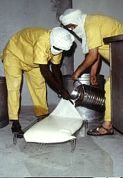 ca. 3,5 % der Kamelidenfasern von Lamas. Die Vermarktung läuft über wenige große Firmen in Peru und Argentinien mit monopolartiger Stellung. Meist erfolgt die Aufbereitung der Rohware (Sortierung, Herstellung von Tops) in Südamerika, während die Garn- und Textilherstellung im Ausland durchgeführt werden. Die Ware wird überwiegend nach Italien (50 %), Deutschland (10 %), Großbritannien (19 %) und Japan (15 %) exportiert, 15 % gehen in andere Länder. Seit ca. 1830 hat sich die industrielle Verarbeitung entwickelt. Möglicherweise wurde Alpakafaser ursprünglich als Ersatz für Mohair nach Großbritannien eingeführt. Heute werden die Fasern in Europa zur Erzeugung hochwertiger Luxustextilien verwendet. Für die Klassifizierung der Rohware besteht kein einheitliches Schema, entscheidende Kriterien sind der Faserdurchmesser, die Farbe und die Faserlänge. Lange Zeit wurden weiße Fasern bevorzugt, da diese beliebig einfärbbar sind; durch das zunehmende Interesse der europäischen Textilindustrie an Naturfarben erzielen z. Z. graue und schwarze Fasern um 25 % höhere Preise als weiße. Es werden 16-24 verschiedene natürliche Farben angeboten, bei denen es sich jedoch häufig um Mischungen handelt. Die Nutzung der Fasern der Wildformen Vikunja und Guanako wird durch das Washingtoner Artenschutzabkommen (CITES) strikt geregelt und z. Z. unterbunden. Vikunjafaser wurde schon im Inka-Imperium als äußerst feine Faser geschätzt. Im Zuge der Kolonialisierung trat an die Stelle der traditionellen Lebendschur bei Treibjagden („chaku") die unkontrollierte Jagd, um die wertvolle Faser zu erlangen. Durch die Schutzbestimmungen haben sich die bedrohlich dezimierten Wildbestände soweit erholt, dass Peru 1993 ein Abkommen erwirken konnte, das in Sonderfällen die kontrollierte Schur von wildlebenden Vikunjas gestattet. Daneben bestehen Bemühungen, semidomestizierte Tiere zur Fasernutzung heranzuziehen. Im Gegensatz zur Vikunjafaser ist die Guanakofaser kaum bekannt, erst jüngere Untersuchungen machen auf den potentiellen Wert der ebenfalls sehr feinen Fasern aufmerksam." [Martina Gerken. -- In. Neuweltkameliden : ein Leitfaden für Halter, Züchter und Tierärzte / Matthias Gauly (Hrsg.). -- Berlin : Parey, ©1997. -- 1ISBN 3826331443. -- S. 98f. --] |