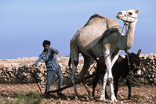 Abb.: Kamele transportieren Ernte, Ägypten, 1992 (Quelle: FAO)Dromedare mit ungewöhnlich gestalteten Höckern werden oft teuer bezahlt. So erbrachte zum Beispiel ein vierhöckriges in der arabischen Stadt Hodeida volle vierzigtausend Mark.