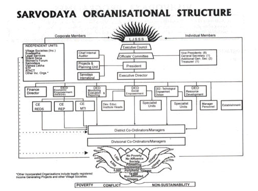 1996 umfasste Sarvodaya folgende rechtlich unabhängige Organisationen: