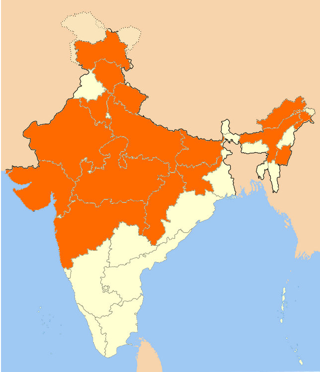 In unterschiedlicher Zusammensetzung bildet die NDA heute unter Narendra Modi (Gujarati: નરેંદ્ર દામોદરદાસ મોદી; 1950 - ) die gesamtindische Regierung. Modi, ein Pracharak (Hindi: प्रचारक) im RSS, der ehemalige Chefminister von Gujarat (ગુજરાત), gewann bei den Parlamentswahlen 2014 die absolute Mehrheit der Parlamentssitze.