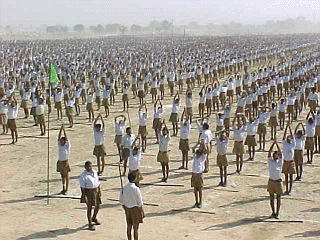 The main focus of Sangh is upon the youths. Besides the Sangh, National Hindu Students Forum in U.K. [Webpräsenz: http://www.nhsf.org.uk/. -- Zugriff am 2001-07-27], Hindu Students Council in U.S.A. [http://www.hindunet.org/hsc/. -- Zugriff am 2001-07-27] are also active. Hindu Sevika Samiti [Webpräsenz: http://www.samiti.org.uk/. -- Zugriff am 2001-07-27] is active among the Hindu girls on the same lines as the Rashtra Sevika Samiti here. The H.S.S. has so far organised youth training and leadership camps twice in Bharat [Indien], in 1992 and 1997, in Bangalore (ಬೆಂಗಳೂರು). It has also organised Vishwa Sangh Shibirs in 1990 (Bangalore (ಬೆಂಗಳೂರು)) and 1995 (Baroda) with a view to bringing together Hindu activists, (both male and female) for mutual interaction. There has been a noticeable upsurge in the Hindu activities abroad in the wake of these impressive camps. The third one in the series is expected to be the biggest so far, with a possible attendance of 500 Hindu workers from about 35 countries which will be held in Mumbai during Dec. 26, 2000 to Jan. 1, 2001.
