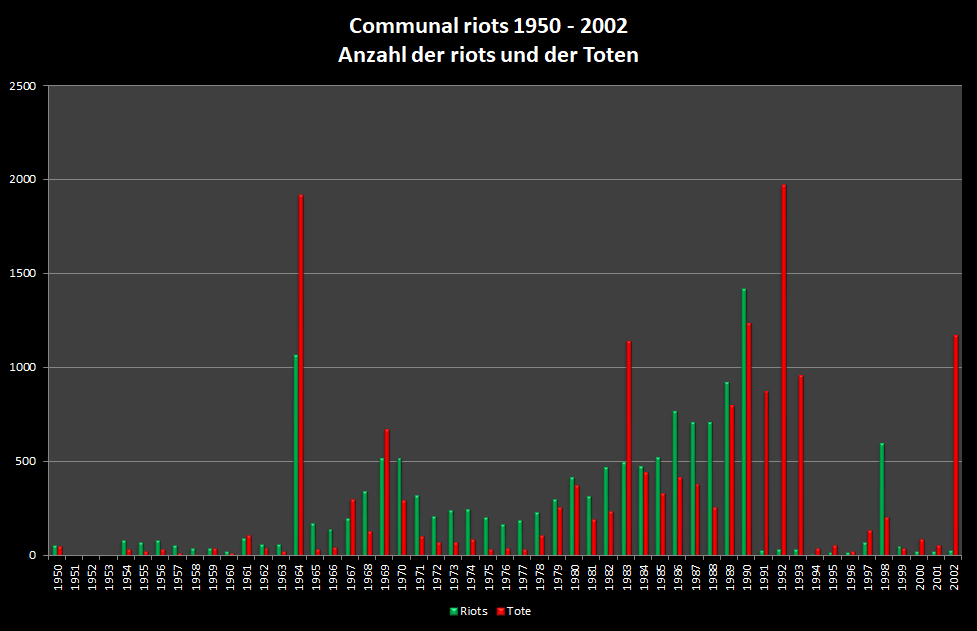 Abb.: Tote bei den Gujarat (Gujarati: ગુજરાત) Riots 2002 (offizielle