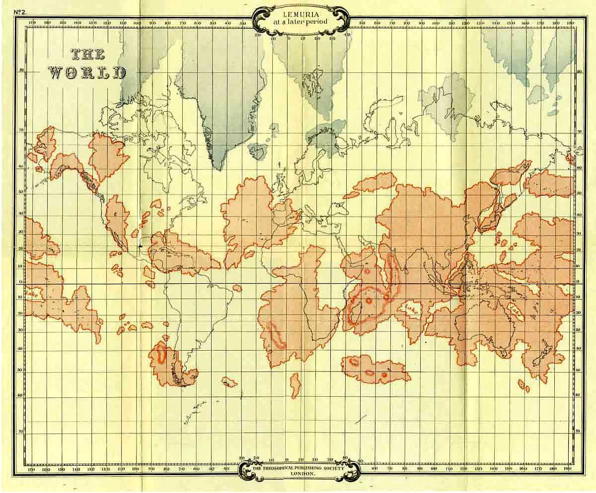 Ernst Haeckel (1834 - 1919): : The history of creation : or the development of the earth and its inhabitants by the action of natural causes: a popular exposition of the doctrine of evolution in general and of that of Darwin, Goethe and Lamarck in particular. -- New York : Aplleton, 1873In der englischen Übersetzung von 1880 wird die Karte "Hypothetical sketch of the monophyletic origin and the extension of the 12 races of man from Lemuria over the earth" so erklärt: