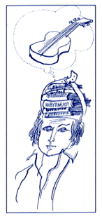 Abb.: Bücherwissen oder Phantasie?. -- Karikatur in: Nebelspalter. --