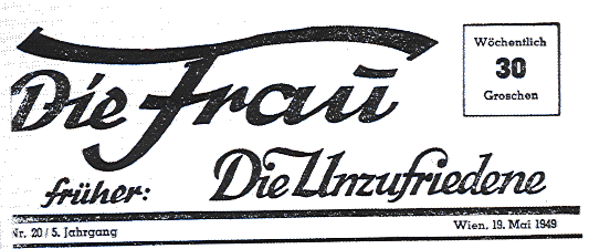 Abb.: Zufriedenheit ist subjektiv: "Die Frau. -- früher: Die Unzufriedene". -- Zeitschriftenkopf,
