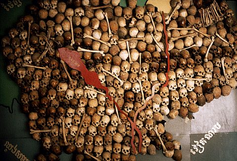 Abb.: Karte Kambodschas aus den Schädeln von durch Rote Khmer Ermordeten, Tuol