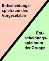 | Vorgesetzter zeigt das Problem auf und legt den Entscheidungsspielraum fest; Gruppe entscheidet | partizipativ | |