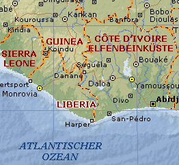 Abb.: Karte von Liberia und Elfenbeinküste, dem Siedlungsgebiet der Dan (©MS-Encarta)