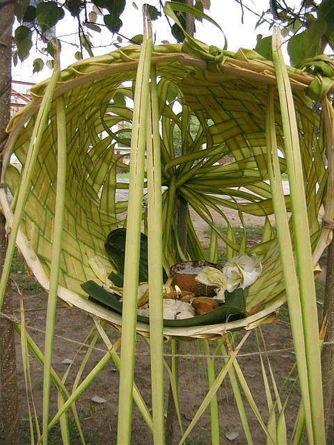 The ritual procedure laid down in our three pamphlets is basically the same, though there are minor variations in such details as the quantity and type of ingredients to be used. Typically the worshipper is instructed to bring baskets of flowers and coconut or mustard oil for lamps, these items being for the worship of Buddha images; and for the worship of the tree, the same plus panic grass, sesame oil, white sandalwood, parched rice, colored pennants, and white sand to sprinkle on the ground. In the early days of enthusiasm some people revived the practice of bathing the tree in milk, but it has been decided that this is bad for the tree and is now actively discouraged, so our texts do not mention it.