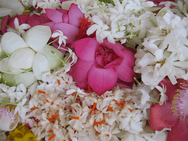 "I make offering to the Buddha with this flower, and by this merit may there be release. Just as this flower fades, so my body goes towards destruction."