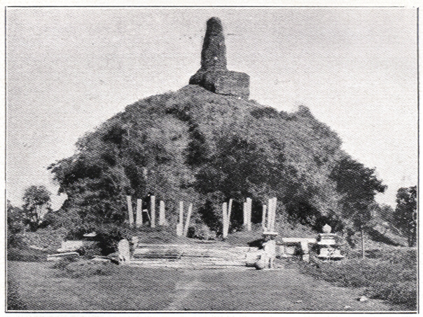 Abb.: Bewuchs: Abhayagiri-Stūpa in Anurādhapura vor der Ausgrabung, vor 1930