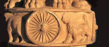 Abb.: Dhammacakka, Löwwenkapitell auf Asoka-Säule, Sarnath, 3. Jhdt v. Chr.