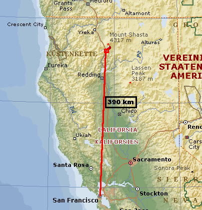Abb.: Lage von Shasta Abbey (©MS Encarta)