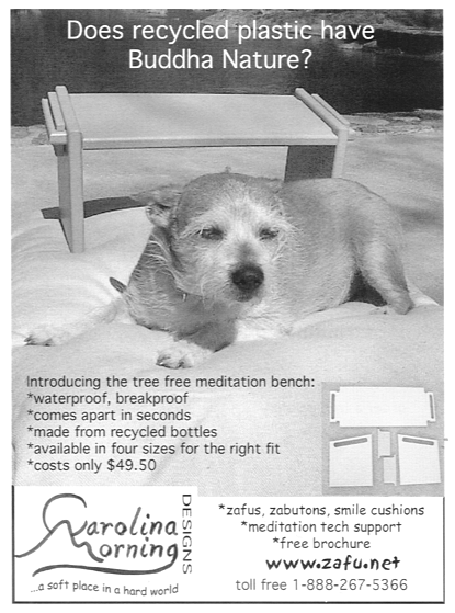 Abb.: Inserat von Zen by Design in Tricycle : the Buddhist review. -- ISSN 1055-484X. -- Vol. XIII, No. 4 (Summer 2004). -- S. 109