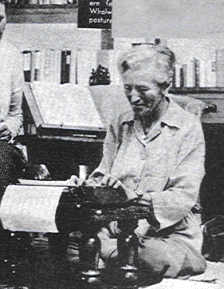 Abb.: Mary Byles"In 1951 Marie Byles was already well on the way to becoming a legendary figure. The first woman to graduate in law in New South Wales, she was also a pioneer conservationist, mountaineer, bushwalker, pacifist, feminist and Buddhist. In her unpublished autobiography, 'Many Lives in One', she writes that although she lived 'on amicable terms' with The Establishment, most of her other pursuits were geared towards 'unconsciously helping to undermine it'. Born 'a heretic', as she put it, to 'Unitarian-dissenting' parents near Manchester, England, in April 1900, she was brought to Australia ' in 1911. Her father was a Fabian socialist, and her mother raised her a staunch vegetarian, so that she claimed in 1957 never to have tasted meat.