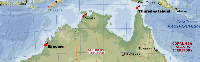Abb.: Lage von Broome, Darwin, Thursday Island (©MS Encarta)