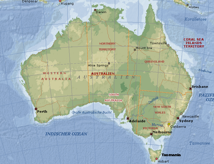 Abb.: Karte von Australien (©MS Encarta)