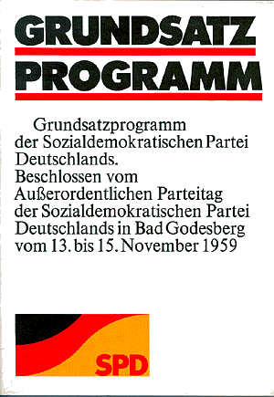 "Das so genannte Godesberger Programm war das Parteiprogramm der SPD von 1959 bis 1989. Es wurde am 15. November 1959 von einem SPD-Parteitag in Bad Godesberg (heute Teil von Bonn) verabschiedet. Es vollzog auch programmatisch den praktisch längst vollzogenen Wandel der SPD von einer marxistischen Arbeiterpartei hin zu einer pragmatischen Volkspartei. Es hat in seinen Grundzügen bis heute Geltung. Vorgänger des Programms war seit 1925 das Heidelberger Programm, das bereits 1946 durch die Politischen Grundsätze der SPD abgeschwächt wurde. Das Godesberger Programm wurde 1989 durch das Berliner Programm abgelöst.