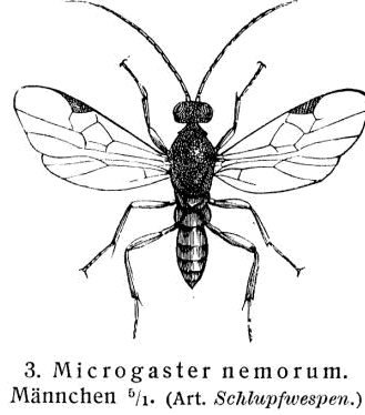 Die sehr zahlreichen Arten der Gattung Microgaster Latr, (mit sehr kurzem Hinterleib) legen fast sämtlich ihre Eier in Schmetterlingsraupen, besonders in behaarte, aus denen sich die entwickelten Larven herausbohren, um sich sofort in Kokons einzuspinnen, die nach kurzer Zeit Wespen liefern.