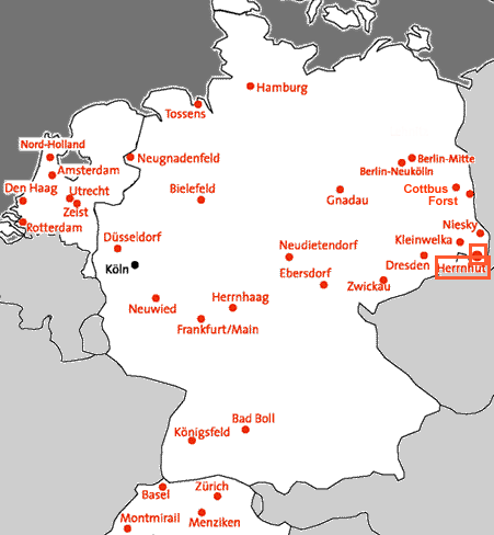 Abb.: Herrnhuter Brüdergemeinden in Deutschland [Bildquelle: