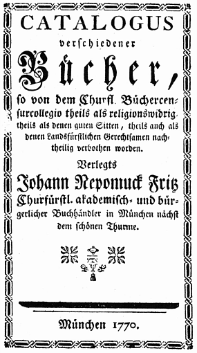 "Illuminaten (lat., »Erleuchtete«), Schwärmer, die sich einer höhern Erkenntnis Gottes und eines engen Verkehrs mit der Geisterwelt rühmten und vielfach Vereine bildeten. Dergleichen waren die Alombrados in Spanien, die Guérients in Frankreich, die 1623 auftauchten, aber schon 1635 wieder unterdrückt wurden, ferner ein Verein von Mystikern in Belgien in der zweiten Hälfte des 18. Jahrh. Zu großer Bedeutung und belangreicher Ausbreitung, zunächst in Bayern, dann aber von Süddeutschland aus auch im mittlern und nördlichen Deutschland gelangte der am 1. Mai 1776 in Ingolstadt gegründete Illuminatenorden, dessen Mitglieder sich zunächst den Namen Perfektibilisten beilegten. Der Stifter dieses Ordens war Adam Weishaupt (1748 - 1830), Professor der Rechte in Ingolstadt, der einer freiern Geistesrichtung huldigte und ein heftiger Gegner der Jesuiten war. Der Orden sollte durch Beförderung religiöser Aufklärung der Vernunft zur Herrschaft verhelfen, der Propaganda weltbürgerlicher Gesinnung dienen und das monarchische Prinzip bekämpfen. Dabei nahm sich der ehemalige Jesuitenzögling die Verfassung und geschmeidige Glätte der Jesuiten zum Vorbild und machte den Mitgliedern der Gesellschaft unbedingten Gehorsam gegen die Obern, besonders den Ordensgeneral, eifriges Bemühen, einflussreiche Männer für den Orden zu gewinnen, regelmäßige Berichte über ihre Fortschritte und gegenseitige Überwachung zur Pflicht. Zur praktischen Anwendung scheinen im Orden nur die drei niedern Grade gelangt zu sein, während die höhern Stufen nur theoretisch ausgesonnen waren. Die Mitglieder führten fremde, mit Vorliebe klassische Namen. Der Orden war ein über das Freimaurertum hinausgehender Geheimbund; jeder Illuminat war Freimaurer, während die für höhere Erleuchtung nicht tauglich Befundenen im Freimaurerbunde zurückgehalten wurden. Eine Neubelebung und starke Ausbreitung in protestantischen Gegenden erfuhr der Orden durch die Tätigkeit des Freiherrn v. Knigge (s. d.). Als Mitglieder sind nachgewiesen Herzog Ernst II. von Gotha und sein Bruder August, Herzog Ferdinand von Braunschweig, Karl Theodor von Dalberg, Karl August von Hardenberg und der nachmalige bayrische Minister von Montgelas; nach Perthes (»Das deutsche Staatsleben vor der Revolution«, S. 262) sollen auch Goethe und Herder Mitglieder gewesen sein. Wie mit andern Ordensmitgliedern geriet Weishaupt auch mit Knigge in persönliche Differenzen, und letzterer schied wenige Tage, nachdem in Bayern eine kurfürstliche Verordnung alle geheimen Gesellschaften verboten hatte, durch Vertrag aus dem Orden aus. Kurfürst Karl Theodor ließ der Verordnung vom 22. Juni 1784 einen verschärften Erlass vom 2. März 1785 und andre mehr folgen. Nach mehrfachen vergeblichen Versuchen hat sich der Orden in der Neuzeit reorganisiert; sein Sitz ist in Dresden, er besitzt Rechtsfähigkeit und wird durch ein Kustosamt vertreten." [Quelle: Meyers großes Konversations-Lexikon. -- DVD-ROM-Ausg. Faksimile und Volltext der 6. Aufl. 1905-1909. -- Berlin : Directmedia Publ. --2003. -- 1 DVD-ROM. -- (Digitale Bibliothek ; 100). -- ISBN 3-89853-200-3. -- s.v.]