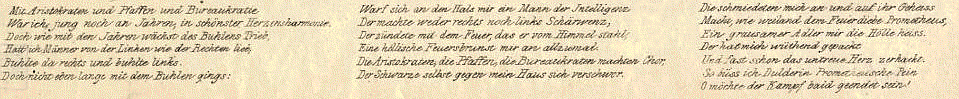 [Quelle: Grab, Walter (1919 - 2000) ; Friesel, Uwe (1939 - ): Noch ist Deutschland nicht verloren : eine histor.-polit. Analyse unterdrückter Lyrik von der Französischen Revolution bis zur Reichsgründung. -- Ungekürzte, überarb. Aufl. -- München : Deutscher Taschenbuch-Verlag, 1973. -- 324 S. ; 18 cm. -- (dtv ; 875). -- Lizenz des Hanser-Verl, München. -- ISBN 3-446-10979-X. -- S. 130f.]
