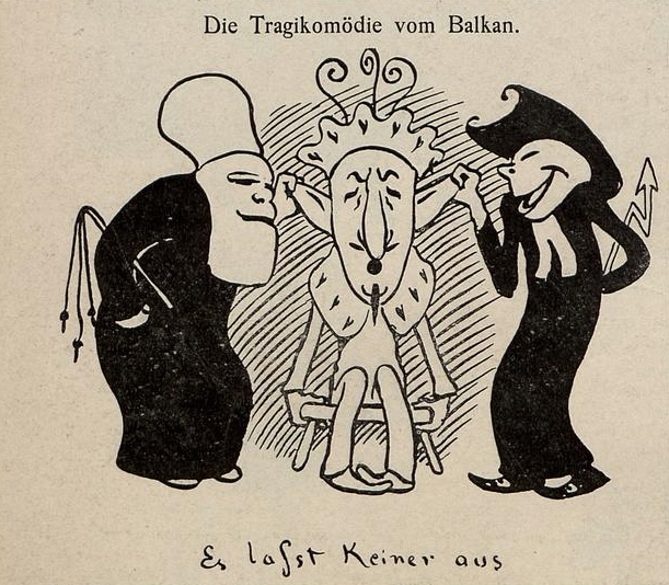 Abb.: Die Tragikomödie vom Balkan. -- In: Jugend. -- Nr. 7. -- 1896