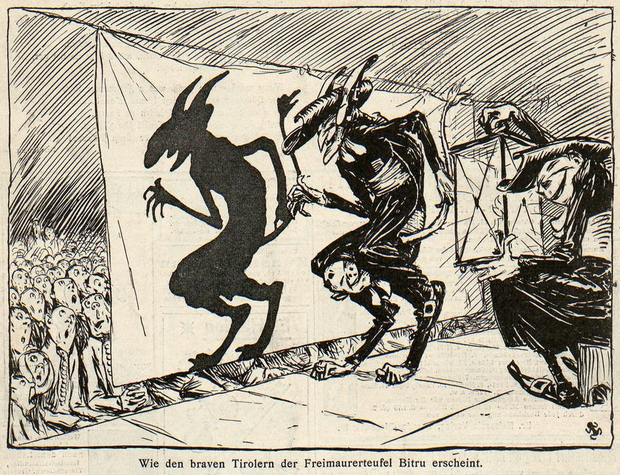 Abb.: Wie den braven Tirolern der Freimaurerteufel Bitru erscheint!. -- In:
