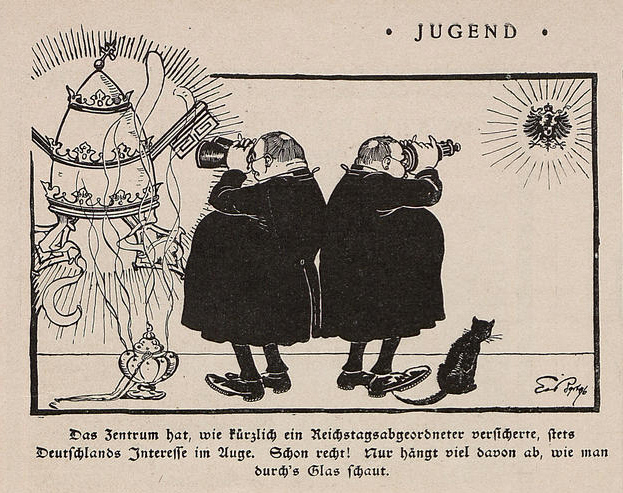 Erläuterung: Im Reichstag stellt die klerikale Zentrumspartei die größte Fraktion.