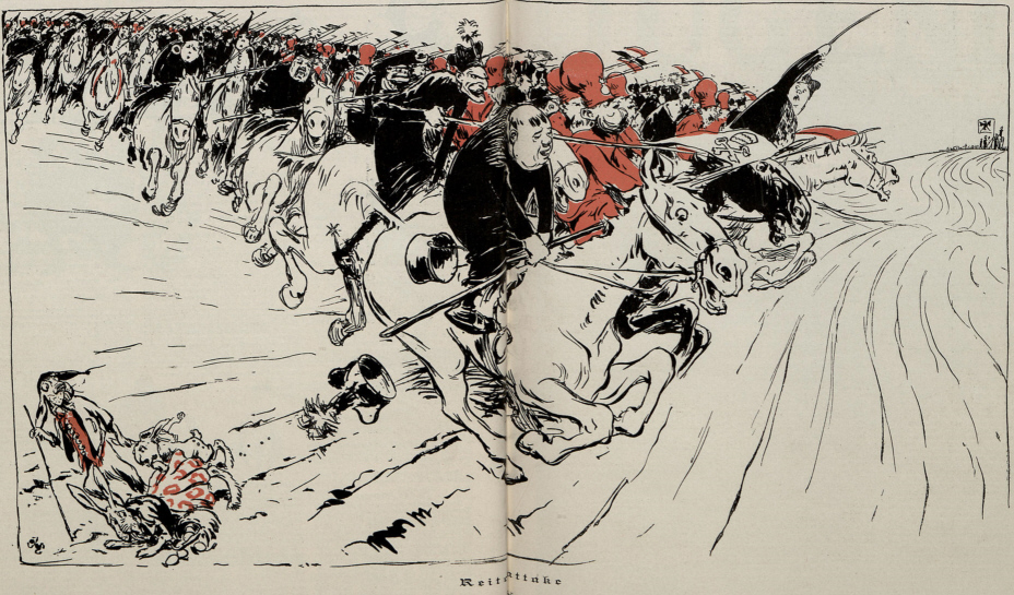 Abb.: Reiterattacke. -- In: Jugend. -- Nr. 43. -- 1897