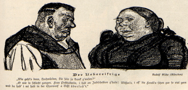 Pater Filucius: "Hm, hm; gar so heiß wird er' nimmer haben, - die Füß' werden halt grad noch drinn sein."
