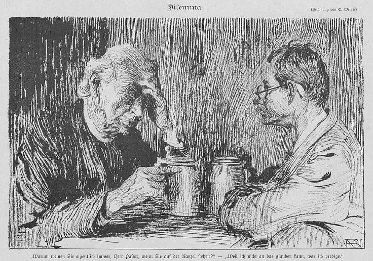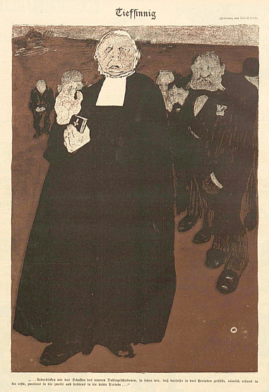 Deutsche Pastoren (Zu einer Karikatur von Eduard Thöny (1866 - 1950)). -- In: Simplicissimus. -- Jg. 10, Nr. 17, S. 202. -- 25. Juli 1905