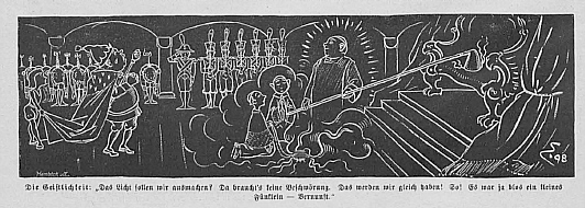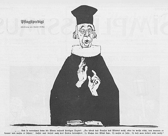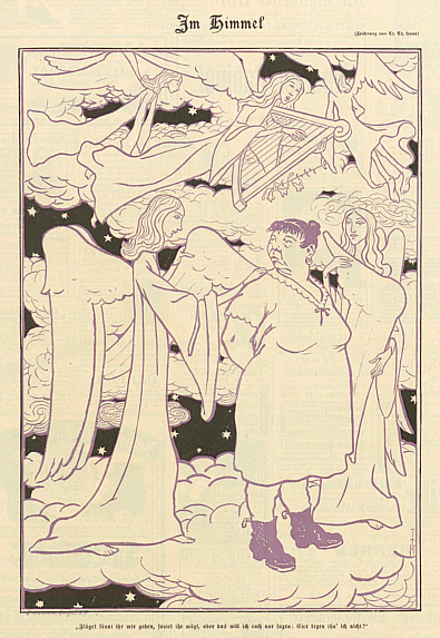 Abb.: Aus einer Himmelfahrtspredigt / Karikatur von Rudolf Wilke (1873 - 1908).