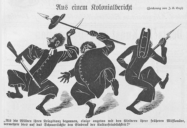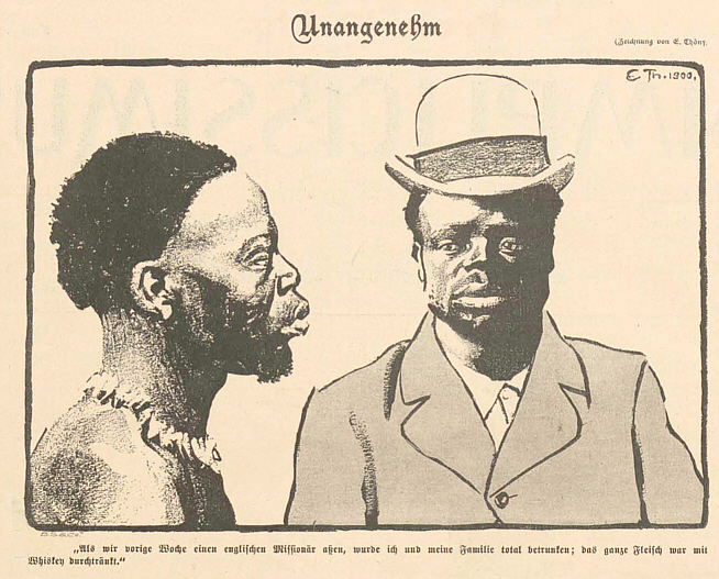 "Ich bedauere es nicht, wenn unsere Jugend in Afrika fällt; so lernet sie den zornigen Gott erkennen. Darf ich Sie heute zu einem saftigen Gänsebraten einladen, Herr Konsistorialrat?"