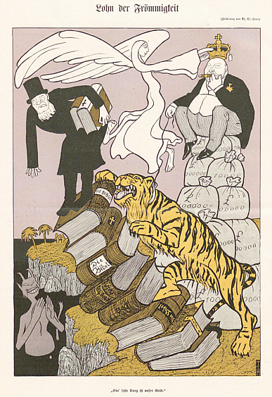Antiklerikale Karikaturen und Satiren V: Simplicissimus (1896 - 1944). -- 1. Jahrgang 1 - 10 : 1896 - 1906 / kompiliert und hrsg. von Alois Payer. -- Fassung vom 2007-12-20. -- URL: http://www.payer.de/religionskritik/karikaturen51.htm