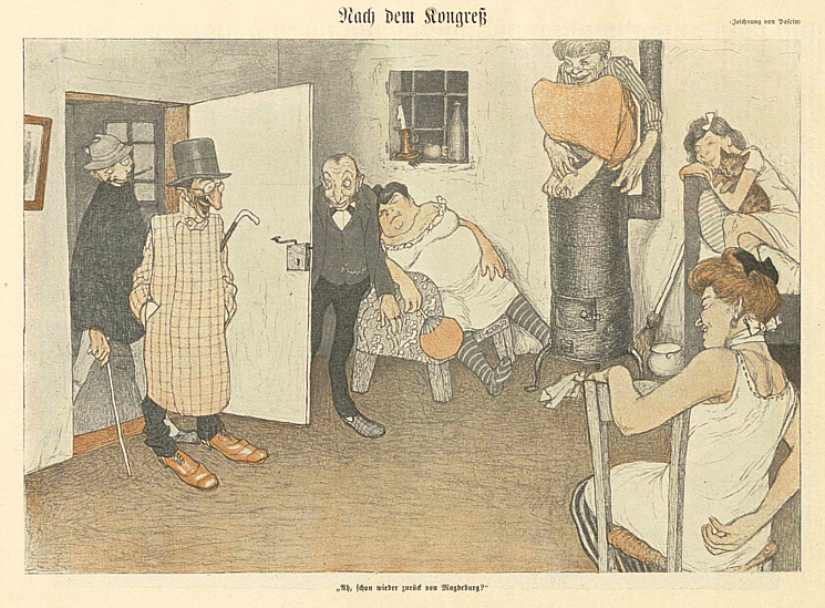 Abb.: Nach dem Kongress / Karikatur von Jules Pascin (1885 - 1930). -- In. Simplicissimus. -- Jg. 10, Nr. 27, S.