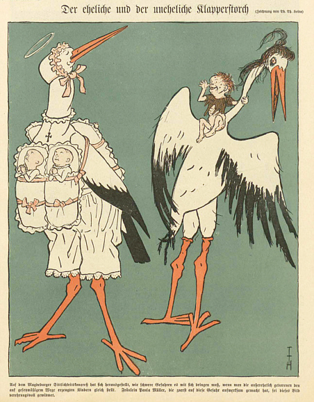 Abb.: Der eheliche und der uneheliche Klapperstorch / Karikatur von Thomas Theodor Heine (1867 - 1948). -- In