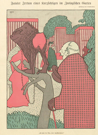 Abb.: Fataler Irrtum eines Kurzsichtigen im Zoologischen Garten / Karikatur von Olaf Gulbransson