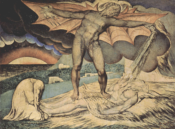 Abb.: William Blake (1757 - 1827): Satan schüttet die Plagen über Hiob aus,