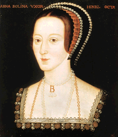 "Anna Boleyn, zweite Gemahlin König Heinrichs VIII. von England, Tochter des Thomas Boleyn, später Grafen von Wiltshire und Ormond, geb. 1503 oder 1504, gest. 19. Mai 1536, wurde, nachdem sie als Begleiterin ihres Vaters einige Zeit am französischen Hof gelebt hatte, Hoffräulein der Königin Katharina von Aragonien, Gemahlin Heinrichs VIII. Letzterer wurde bald von leidenschaftlicher Liebe zu der mit vielen körperlichen Reizen ausgestatteten Hofdame ergriffen, suchte seine Ehe mit Katharina aufzulösen und vollzog, noch bevor der Erzbischof Cranmer diese für nichtig erklärt hatte, im Januar 1533 seine Vermählung mit Anna Aber Heinrichs Liebe zu Anna schwand bald dahin, zumal da sie ihm nur eine Tochter, Elisabeth, geboren hatte (1533). Sie wurde des wiederholten Ehebruchs und der Blutschande beschuldigt und in den Tower geworfen. Obwohl sie ihre Unschuld beteuerte, wurde sie 15. Mai 1536 durch ein Gericht von 26 Peers schuldig gesprochen und 19. Mai enthauptet." [Quelle: Meyers großes Konversations-Lexikon. -- DVD-ROM-Ausg. Faksimile und Volltext der 6. Aufl. 1905-1909. -- Berlin : Directmedia Publ. --2003. -- 1 DVD-ROM. -- (Digitale Bibliothek ; 100). -- ISBN 3-89853-200-3. -- s.v.]
