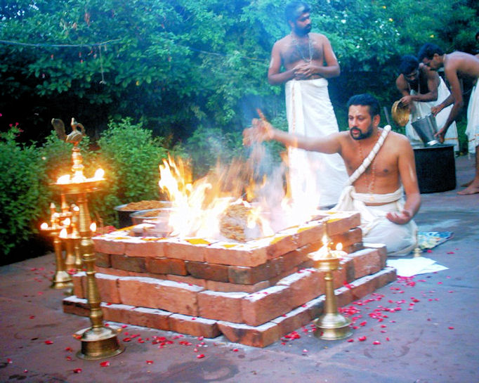 Abb.: Welchem Gott opfert man hier? -- Antwort: dem Gaṇeśa (Gaṇapati) = गणेश (गणपति)