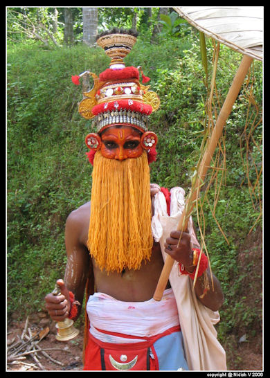 "Onappottan (ഓണപ്പൊട്ടന്), in traditional costume is a custom in sourthern parts of Kerala. Onappottan visists houses during the onam and gives blessings. Off late onappottan has become a rare sight, confined to villages."