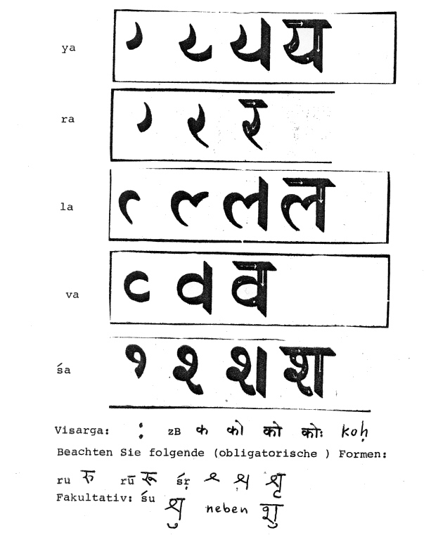 Payer, Alois <1944 - >: Sanskritkurs. -- Devanāgarī = देवनागरी. -- 3. Schriftübung 3. -- Fassung vom 2008-11-17. -- URL: http://www.payer.de/sanskritkurs/schrift03.htm